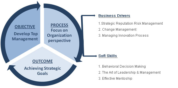 Leadership Development Programs equip the top management with effective leadership skills, provide strategic direction, and build organizational capability, thus helping the organization to be successful in the long term. These programs focus on the business drivers (strategic reputation risk management, change management etc) and soft skills programs like behavioral decision making and effective mentorship.
